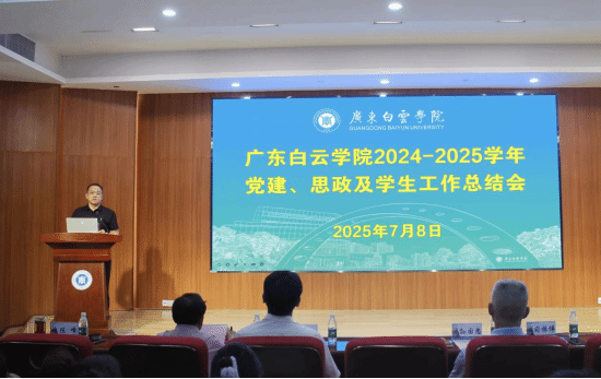 7月8日, 广东白云学院在北校区白云楼201报告厅召开广东白云学院2024-2025学年党建思政及学生工作总结会。党委书记孙国忠强调,党建与学生工作队伍要深化以“良心”为道德底线、“责任心”为行为准则、“事业心”为价值追求的自我修养与职业精神涵养,筑牢立德树人精神根基。