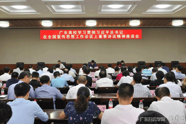 他强调,各高校要切实把思想和行动统一到习近平总书记在全国宣传思想工作会议上重要讲话精神上来,增强做好高校宣传思想工作的责任感使命感。要切实抓好习近平总书记重要讲话精神的学习贯彻工作,迅速掀起学习宣传贯彻热潮。要加强学习,加强融合,加强宣传,加强转化运用,全力以赴把习近平总书记重要讲话精神学习到位、贯彻到位、落实到位,开创广东高校宣传思想工作新局面。