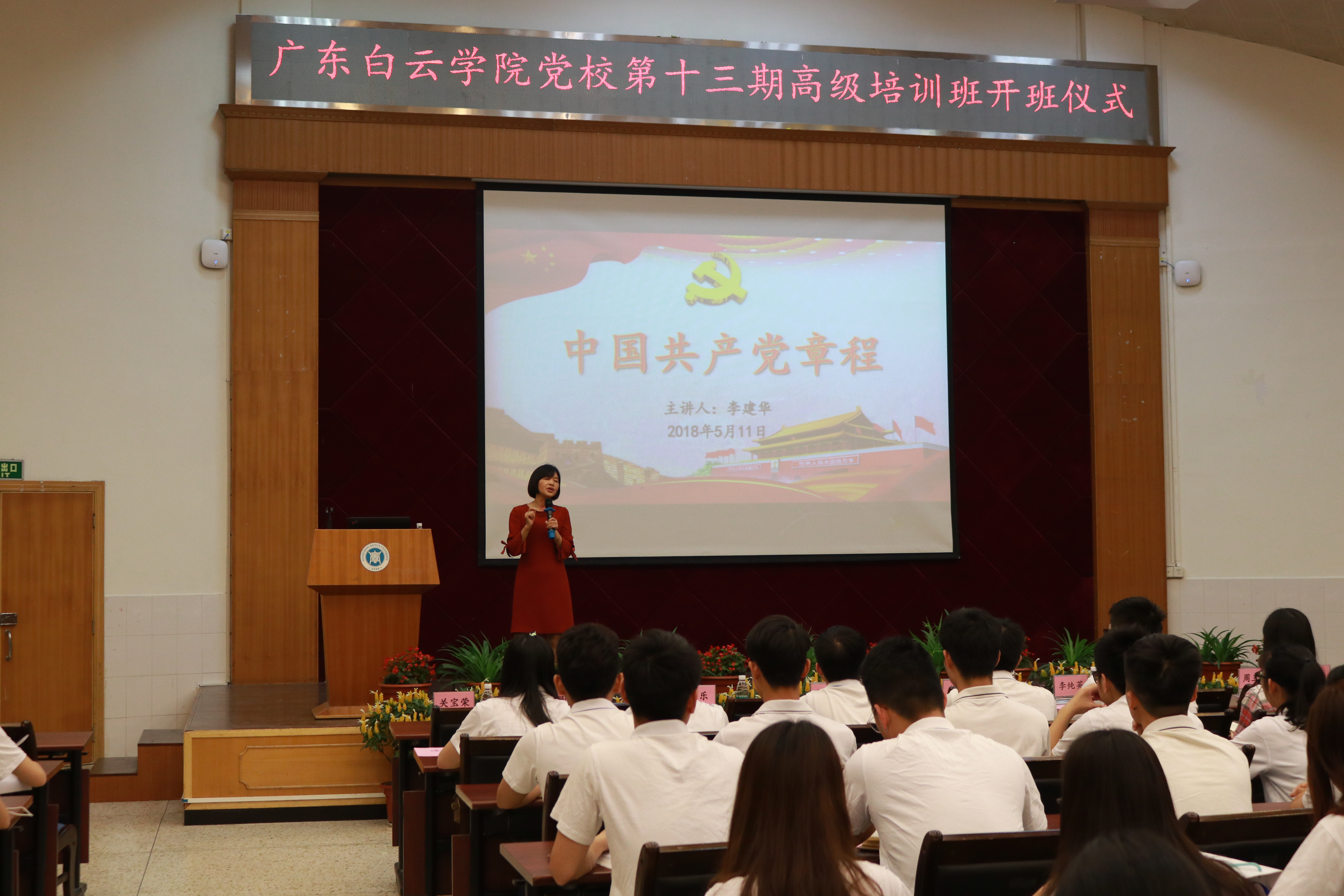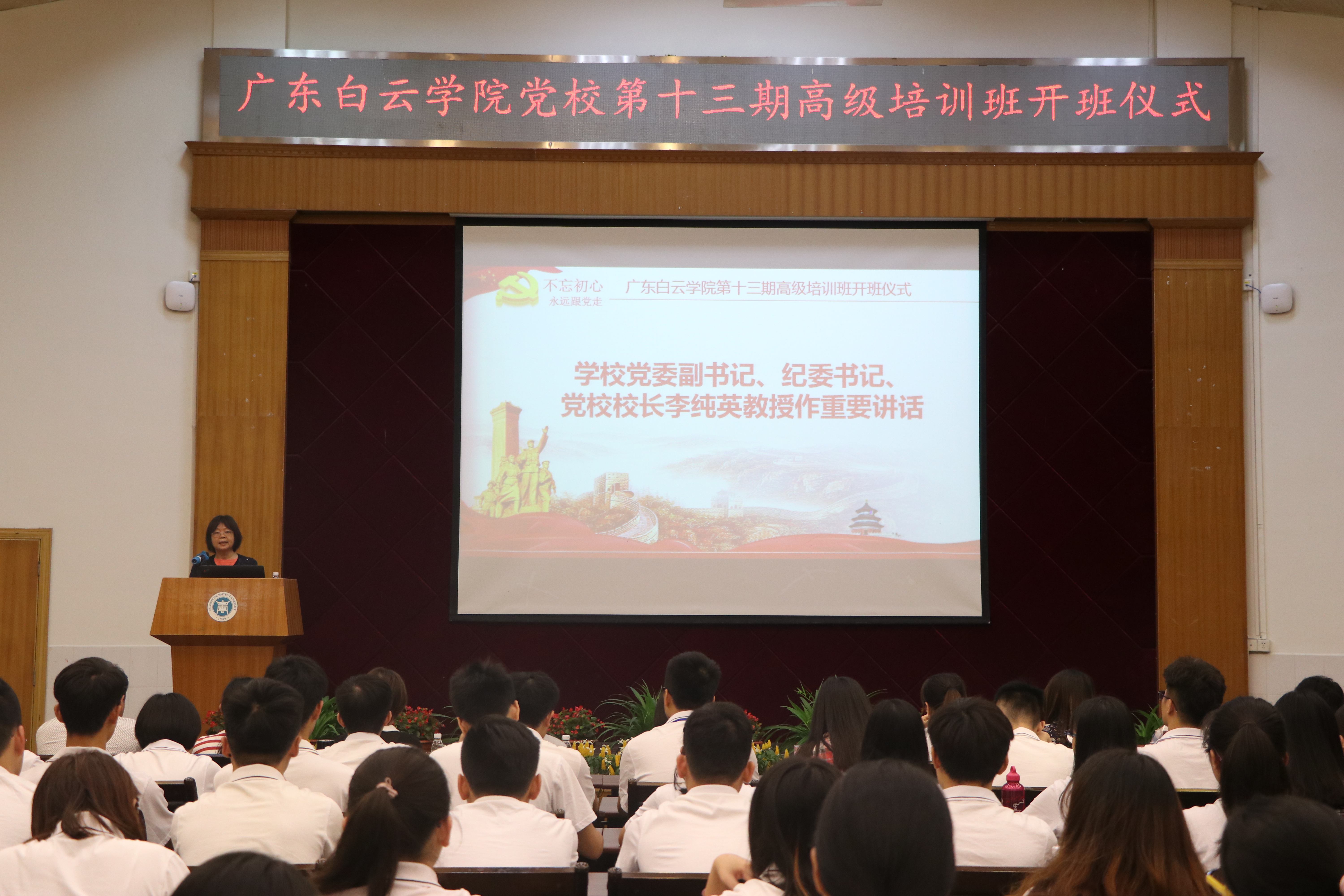 5月11日下午,广东白云学院党校第十三期高级培训班在儒学堂举行开班仪式。校党委副书记李纯英、党委组织部副部长李建华,各二级学院学生党支部书记代表以及本期高级培训班学员近200人参加了开班仪式。
