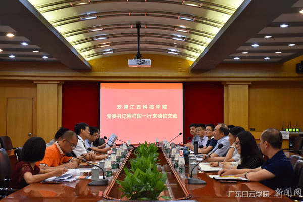 我校党委书记刘剑锋代表学校董事会对程样国书记一行的到来表示热烈欢迎,表示江西科技学院和广东白云学院作为中国教育集团控股有限公司旗下的两所兄弟院校,都是民办教育的领先者,在办学理念、办学模式等方面都有鲜明的特色,希望两所兄弟院校加强交流,携手并进,共谋发展,共同开创中国教育集团控股有限公司发展的新局面。