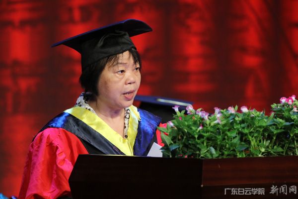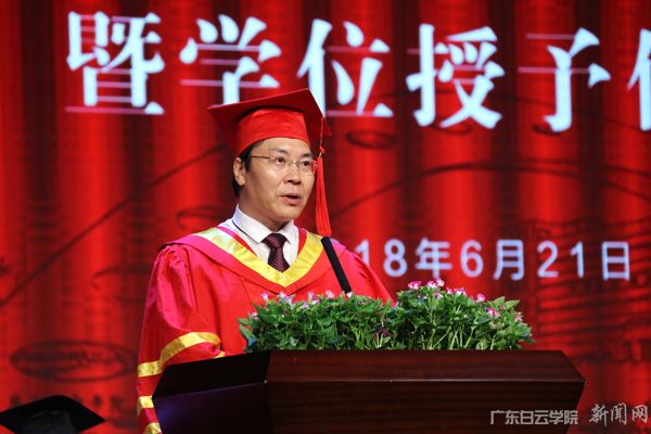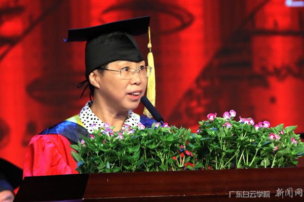 “青春遗回响,芳华忆白云。四年前,同学们从天南地北汇聚白云学院,四年大学生活,你们在青春燃烧的岁月中以校园为舞台,经历了专业熏陶和技术技能养成,体验了思维洗礼与艺术气质升华,学会了独立思考并能用辩证的思维看待和解决问题,收获了一群有理想能奋斗敢担当的同窗学友...... 我也很荣幸成为大家的一员,参与大家的故事,见证大家的成长。无论你们是选择继续深造,还是选择就业、创业,我都期望大家听从时代的召唤,尊重内心的真实,带上白云学子独有的朝气蓬勃,牢记“敦品励学 求是笃行”的校训,早日确定自己的人生航标,义无反顾地踏上新的征程。同学们,感谢你们为白云学院应用技术大学的建设事业增添了新的光彩,母校为你们点赞!母校永远是你坚强的后盾,温暖的港湾!”