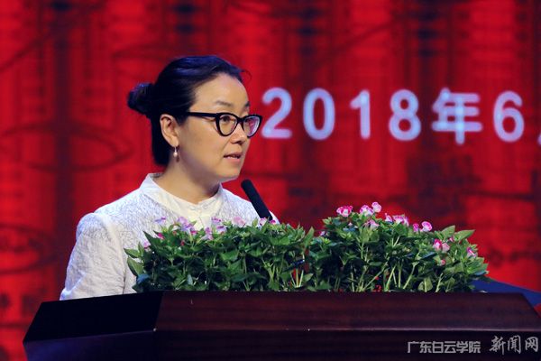 艺术设计学院郭艳作为教师代表讲话,为毕业生们送上祝福。郭老师说到:“大学毕业是一个人的人生道路上的重要分水岭,离开学校就意味着以后你要独立去面对社会上的纷纷扰扰,通俗讲就是你失去了“啃老”的基本资格,所以在这个时刻,很多毕业生们的心理应该是激动的、茫然的、踌躇满志的亦或是惊慌失措的,但我想我们白云的毕业生应该是从容淡定的,因为我们的企业实践教学是先人一步的,“3+1”的教学模式下,大家已经在企业实践了1年,即将离开学校走向社会的那种茫然无措其实在去年就已经体验过了。”这个世界也许并不完美,生活也许不尽如人意。但她相信白云所有的毕业生在以后的人生道路上都能够以平和的心态,微笑面对一切成功与失败,并能坚持到底!