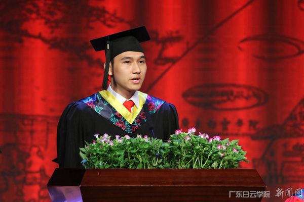 大数据与计算机学院2014级信息管理与信息系统班的蔡志潜作为优秀毕业生代表发表深情感言,他向大家分享了白云生活的成长与快乐,表达了对母校的眷恋和感恩之情。