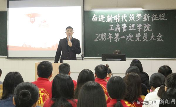 为全面贯彻落实习近平新时代中国特色社会主义思想,响应党和国家号召,不忘初心,坚定不移地朝着新目标不断前进,3月22日工商管理学院在思齐楼311召开“奋进新时代,筑梦新征程”2018年第一次学生党员大会。党总支副书记刘华兰、组织委员柯玉舟、第一学生党支部书记周炎、第二学生党支部书记兼宣传委员陈何捷及团总支书记兼学生会秘书长韩旻和辅导员周妃妃参加了会议。其他与会人员有全体在校党员、预备党员和第40期入党积极分子。