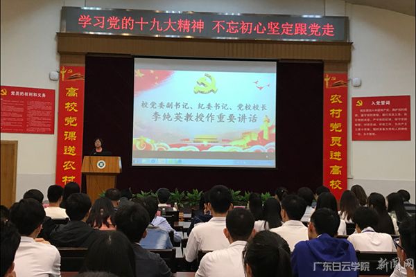 11月14日下午,广东白云学院党校第十二期高级培训班在儒学堂举行开班仪式。校党委副书记李纯英、党委组织部副部长李建华,各二级学院学生党支部书记以及本期高级培训班学员和我校2017年新转入党员共200多人参加了开班仪式,仪式由组织部林显锐同志主持。