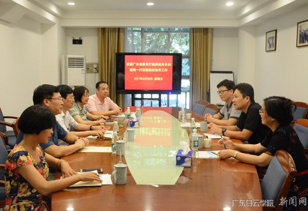 6月30日上午,广东省教育厅组织处处长白建刚、副处长叶祝秋、组织科科长关春杰三人莅临我校调研党建工作。我校党委书记刘剑锋、党委副书记、校长黄大乾、党委副书记李纯英、学生工作部(处)部长陈峰、党委组织部副部长李建华接待了白处长一行并参与了调研座谈。