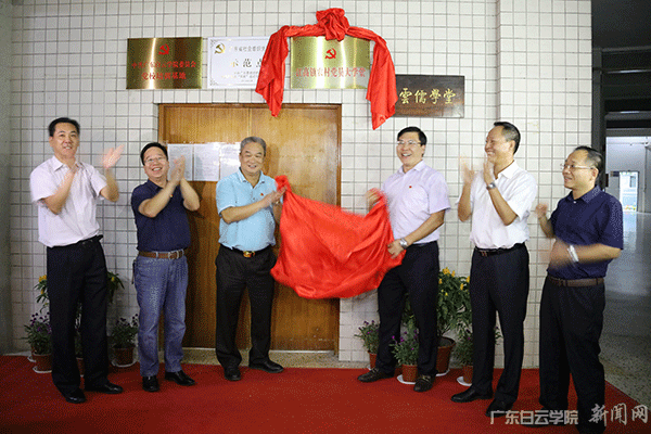 随后,张伟良书记、谢可滔董事长和黄大乾校长等领导一起为“江高镇农村党员大学堂”揭牌。会前,江高镇党委与我校党委达成共识,联合共建“江高镇农村党员大学堂”,地点设在我校儒学堂。目的是发挥高校的教育主阵地作用,利用我校较强的师资力量,为江高镇各村党员上党课,实现农村党员进高校,高校党课送农村的党员教育模式。