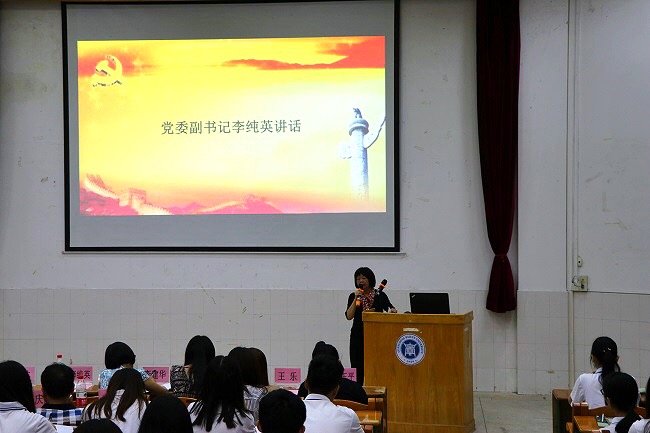 最后,校党委李纯英副书记作重要讲话。李书记表示,我校党委一直坚持三级党校培训的机制,旨在加强对党员和入党积极分子的教育,保证我校党员的质量。李书记强调,党校培训是入党积极分子成为党员必须的条件,目的是为进一步提高入党积极分子对党的认识、对党组织、对党的光辉历史的了解,通过党校的培训、学习,端正学员们的入党动机。李书记对参加本次高级党校学习的学员们提出了几点希望:一是希望学员们能认真学习党章党规,多方位、多角度提高对党的认识,坚定对党的信念;二是希望学员们能够进一步发挥党员的先锋模范作用,积极响应学校的文明修身工程建设,带动身边的同学,从根本上改进学风建设。