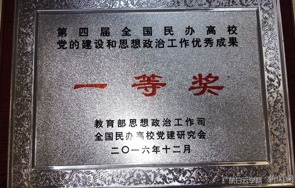 研讨会还对评选出的第四届全国民办高校党的建设和思想政治工作优秀成果进行表彰。第四届全国民办高校党的建设和思想政治工作优秀成果评选活动由教育部思想政治工作司、全国民办高校党建研究会组织,于今年1月启动。在全国数百所民办高校申报、各省(区、市)教育主管部门遴选推荐的160余项成果中,经全国民办高校党建研究会秘书处审查、全国民办高校党建研究会专家组评选、教育部思想政治工作司审批,共产生特等奖4项、一等奖10项、二等奖22项、优秀奖23项。我校申报的党建工作创新成果“创新党建工作机制,推动民办高校转型发展”在众多学校党建工作成果评选竞争中脱颖而出,荣获一等奖。学生工作部(处)长陈峰代表学校领取该奖项。这是我校党委继2012年、2014年后第三次获得全国民办高校党的建设和思想政治工作优秀成果一等奖。这一殊荣是教育部思政司和全国民办高校党建研究分会对我校党建工作的高度认可;是民办高校党委在学校发展中发挥政治核心作用的结果;是我校各基层党组织和全体党员在学校党委领导下共同努力的结晶;是继今年“七一”广东省委授予广东白云学院党委“先进基层党组织”后的又一殊荣。标志着我校党建工作进入了全国民办高校的先进行列。