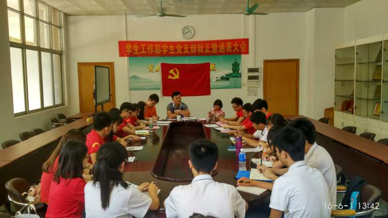 6月1日,广东白云学院学生工作部学生党支部转正暨通表大会在学生处会议室召开。出席本次大会的有党支部书记张泽彬、学生工作部李建华老师、段立老师、学工部学生党员以及发展对象。