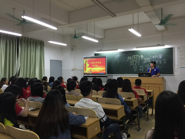 10月26日--29日,中国共产党第十八届中央委员会第五次全体会议在北京召开。全会听取和讨论了习近平受中央政治局委托所作的工作报告,会议审议通过了《中共中央关于制定国民经济和社会发展第十三个五年规划的建议》。国家主席习近平就《建议(讨论稿)》向全会作了说明。外国语学院、国际学院党总支师生密切关注全会动态,通过网络、报纸等多渠道热议会议公报内容,并于11月3日晚19:00组织召开党总支和学生支部大会,集中学习领会会议精神。