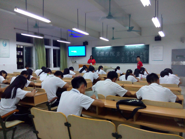 9月28日晚, 管理学院300余名入党申请人在经过一周系统的党课培训后,于思齐楼进行结业考试。