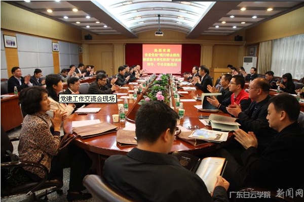 2月28日,由省委党校主办的“践行群众路线 创建服务型党组织”培训班学员党建工作交流会在广东白云学院国际会议厅举行。省委党校干部教育行政学院副院长陈英初、省委党校培训班班主任施韶辉、东莞市社会组织工委书记江琳、党校培训班全体学员出席了会议。广东白云学院党委书记刘剑锋、副书记李纯英、党委委员副校长李望国、党委委员校长助理肖军田等校领导参加了党建工作交流会。会议由省委党校培训班班主任施韶辉主持。