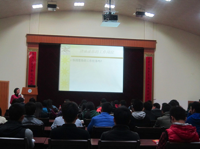 培训活动由校党委组织部副部长、学生党建工作负责人李建华老师主讲,她从我校近年党建发展历程讲起,向同学们介绍了党员发展流程、发展工作注意事项、档案管理、组织关系管理以及党支部管理与党支部自身建设等相关党建工作进行了详细的介绍,同时指出了学生党员应在企业实践教学中发挥党员的模范作用,并结合将要开展的党的群众路线教育实践活动传达了学生党建工作具体要求。