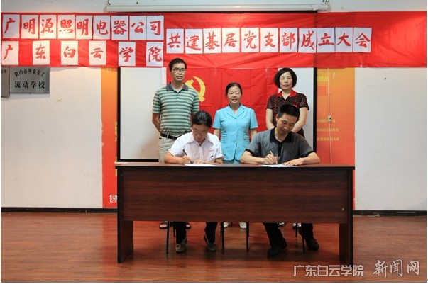7月10日下午,广东白云学院与广明源照明电器有限公司共建基层党组织挂牌仪式在广明源照明电器有限公司多功能报告厅隆重举行。