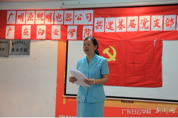 除了此次与广明源照明电器有限公司共建基层党组织外,学校还将与另外四家公司(广东怡创科技股份有限公司、奥迪通用照明(广州)有限公司、来此购集团、广州市福临门金银制品有限公司)相继举行共建基层党组织挂牌仪式。广东白云学院“两新组织“共建党支部的工作,为推动民办高校和民营企业基层党组织交流、合作与共同发展,开创新时期“两新组织”党建工作的新局面,探索出了一条党建工作与“两新组织”共赢发展的新路子,在全省共建基层党组织活动中起到了很好的示范作用。