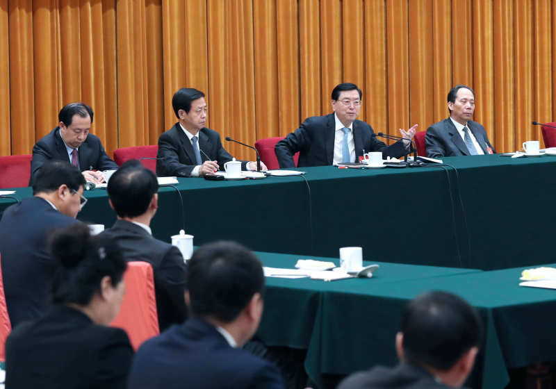 3月8日,中共中央政治局常委、全国人大常委会委员长张德江参加十二届全国人大五次会议黑龙江代表团的审议。
