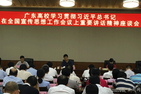 他强调,各高校要切实把思想和行动统一到习近平总书记在全国宣传思想工作会议上重要讲话精神上来,增强做好高校宣传思想工作的责任感使命感。要切实抓好习近平总书记重要讲话精神的学习贯彻工作,迅速掀起学习宣传贯彻热潮。要加强学习,加强融合,加强宣传,加强转化运用,全力以赴把习近平总书记重要讲话精神学习到位、贯彻到位、落实到位,开创广东高校宣传思想工作新局面。