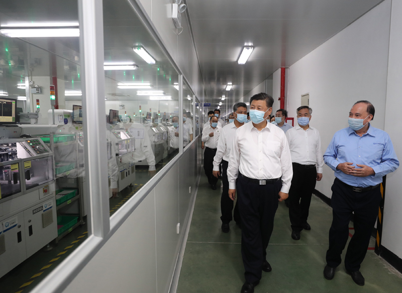 离开牌坊街,习近平来到潮州三环(集团)股份有限公司调研。50年来,这家企业坚持自主创新,不断推动产业升级,在电子元件、先进材料研发和生产上走在行业前列,一些产品产销量位居全球前列。疫情期间,企业在坚持严格疫情防控的同时,积极复工复产,产销量实现了逆势上扬。在公司展厅,习近平察看特色产品展示,详细询问产品应用、技术优势、市场销售等。他还走进实验室和生产车间,了解企业坚持自主创新、推动传统制造业转型升级以及开拓国内国际市场等情况。习近平强调,自主创新是增强企业核心竞争力、实现企业高质量发展的必由之路。希望你们聚焦国内短板产品,在自主研发上加倍努力,掌握更多核心技术、前沿技术,增强企业竞争和发展能力。面对世界百年未有之大变局,面对国内外发展环境发生的深刻复杂变化,我们要走一条更高水平的自力更生之路,实施更高水平的改革开放,加快构建以国内大循环为主体、国内国际双循环相互促进的新发展格局。大家要深刻领会党中央战略意图,在构建新发展格局这个主战场中选准自己的定位,发扬企业家精神,推动企业发展更上一层楼,为国家作出更大贡献。