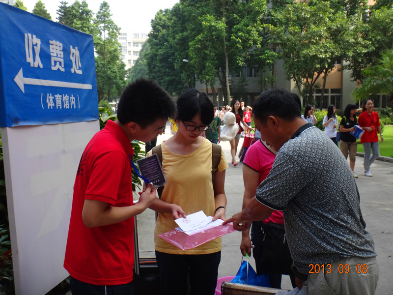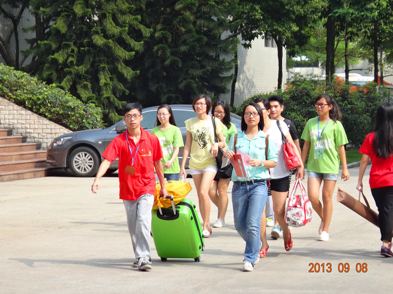 2013年9月7、8号,广东白云学院新生报到的日子,全院师生都以饱满热情投入到迎新工作当中,当然这其中也不会缺少财经学院党员们的身影。在财经学院党总支志愿者“阳光队”的带领下,我院的党员同志们充分发挥了先锋模范带头作用。看到穿着红色党服的党员们穿梭在校园里,一趟又一趟的为师弟师妹们搬行李,心头不免有些触动。当年的我们也是在师兄师姐的帮助下,才能够迅速融入到这个陌生的环境。滴水之恩,当涌泉相报!如今,我们以同样的方式在帮助刚刚踏入白云的师弟师妹们,不同的是现在财经党员有了自己的队伍——“阳光队”,不再是只有“有困难,找党员”这个小口号的群体。