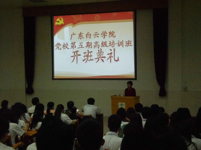 4月24日下午,在思齐楼312多媒体课室,广东白云学院党校第五期高级培训班开班典礼在庄严的国歌声中拉开了序幕。学校党委副书记李纯英、党委组织部长邓妍妍、学生工作部副部长李林、各二级学院党总支书记、学生党支部书记、本次培训班全体学员出席了开班典礼,开班典礼由组织部部长邓妍妍主持。