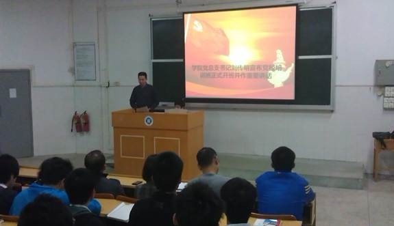 党校开班典礼在《国际歌》声中拉开帷幕。随后,机电工程学院党总支书记刘传明宣布党校培训班正式开班并作重要讲话,刘书记强调进入党校学习是一件非常光荣的事情,要求各位学员一定要在日常行为规范当中严于律己,以身作则,做好先锋模范带头作用,并提出关于党课学习的一些具体要求。随后,由学生代表张师荧上台发言,体现了同学们都渴望深入全面地去了解关于中国共产党的知识,表明要积极地上好每一节党课。接着,校党委副书记李纯英同志在开班典礼上作了重要讲话,指出学员要通过党课学习,提高自身的思想党悟,端正入党动机,扎实理论知识,明白当代大学生的责任,努力学习理论知识并联系实际,积极向党组织靠拢。最后,主持人宣读了《机电工程学院入党积极分子中极培训班学员管理规定》,并宣布开班典礼结束。