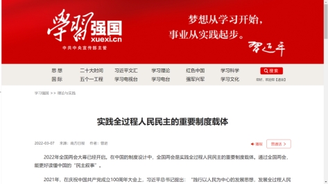 发表论文《实践全过程人民民主的重要制度载体》并被学习强国转载
